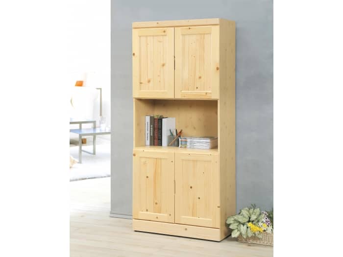 SB-松木實木2.7尺中空四門書櫥